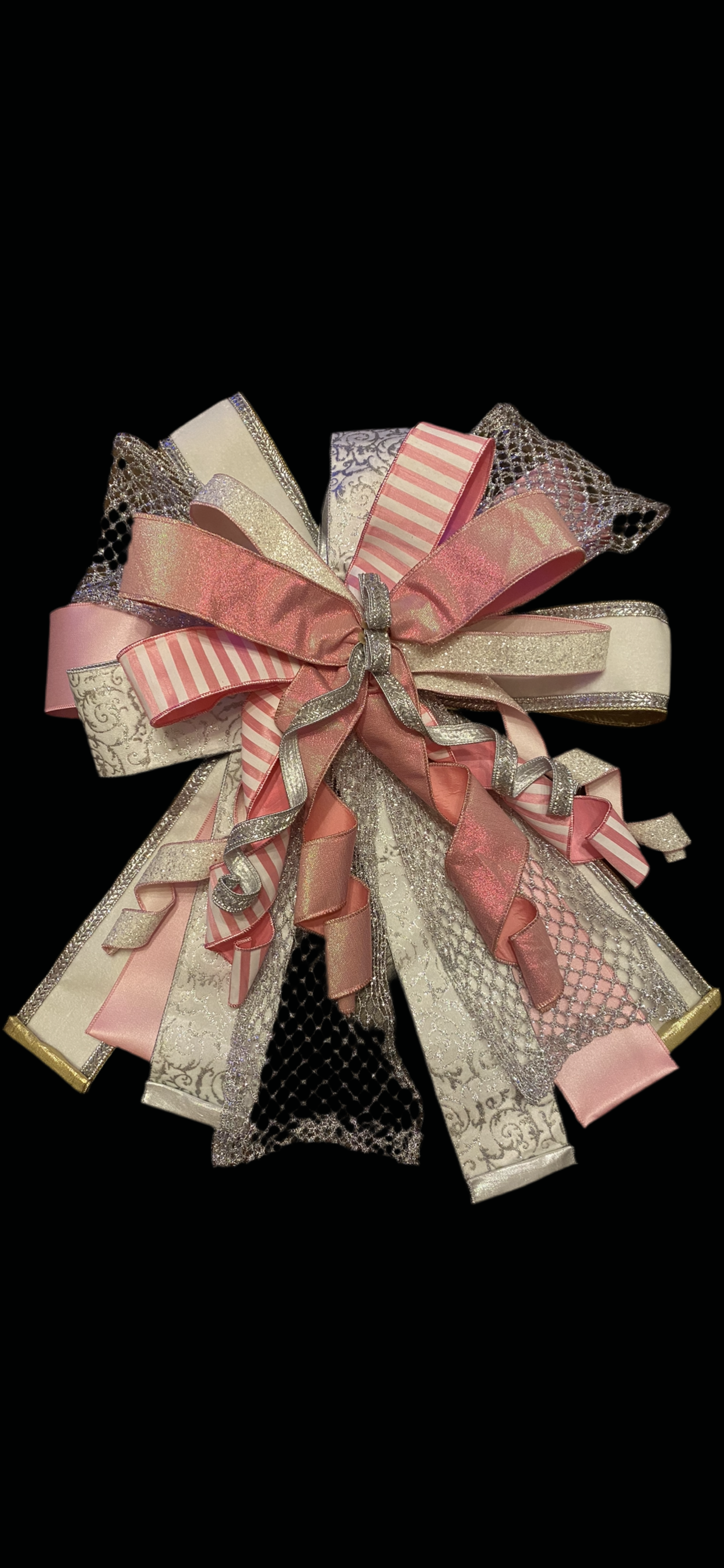 Pink, white, silver bow/tree topper